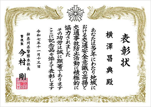 2025-11-13 神奈川県警察本部長より弊社広報部 横澤 昌典が表彰されました。